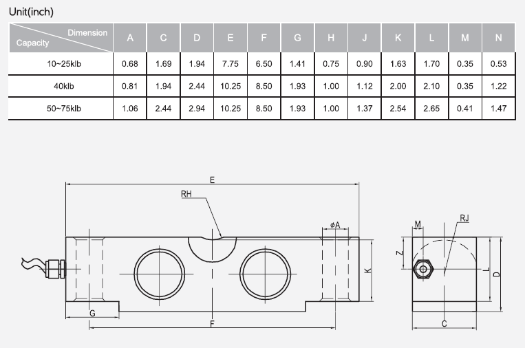 Rated Capacity: 10/20/25/40/50/60/75klb