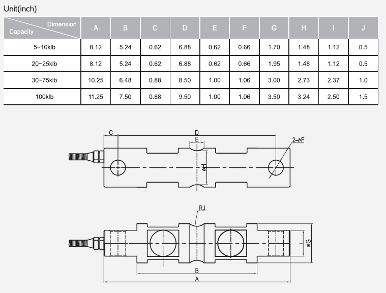Rated Capacity: 5/10/20/25/30/40/50/60/75/100klb